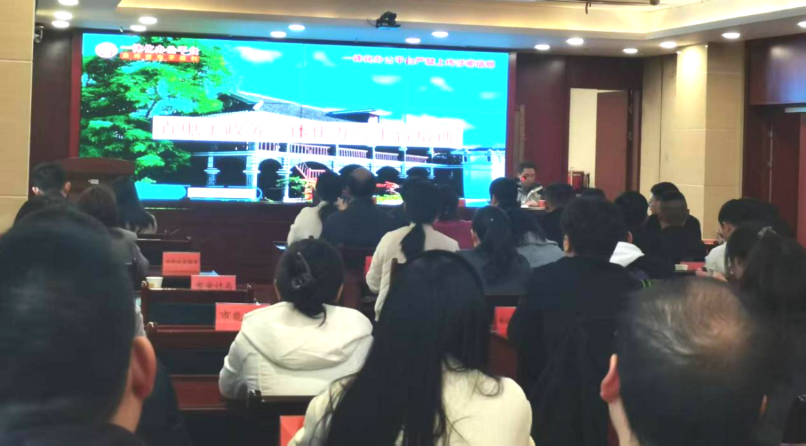 贵州惠智为遵义市进行省电子政务一体化办公平台应用培训发表时间:2025-11-13 14:44 为进一步提升遵义市各单位应用水平,促进各项工作有力有效有序开展。2025年11月11日,遵义市政务服务中心组织召开省电子政务一体化办公平台业务培训会,主会场设在遵义市政务服务中心,分会场设在各县(市、区)政务服务管理局。惠智公司运维部副经理林铁,应邀作省电子政务一体化办公平台工作应用、网络安全、保密知识等内容培训。现场80余人、线上100余人参加。