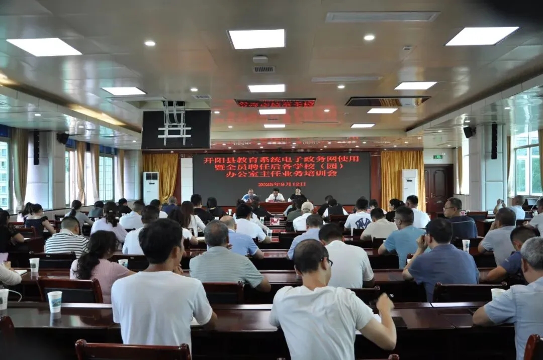 【转载】开阳县教育系统召开电子政务网使用暨全员聘任后各学校(园)办公室主任业务培训会发表时间:2025-09-18 10:24 为进一步推进全县教育系统电子政务一体化办公平台规范使用及管理,提升办公室的业务能力和服务水平,构建全员应用、协同高效的办公体系。9月12日,开阳县教育局联合县政府办召开教育系统电子政务网使用暨全员聘任后各学校(园)办公室主任业务培训会。此次培训分为两个阶段,县教育局各科室(中心)公文收发员、全县公办学校(园)办公室主任共70余人参加。